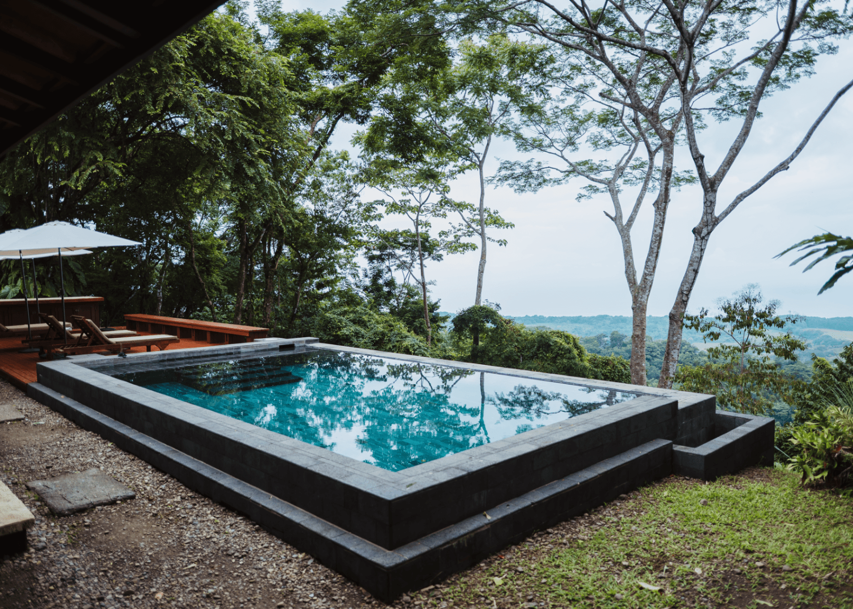 Located next to the infinity pool with beautiful views of the forest, mountains & ocean.